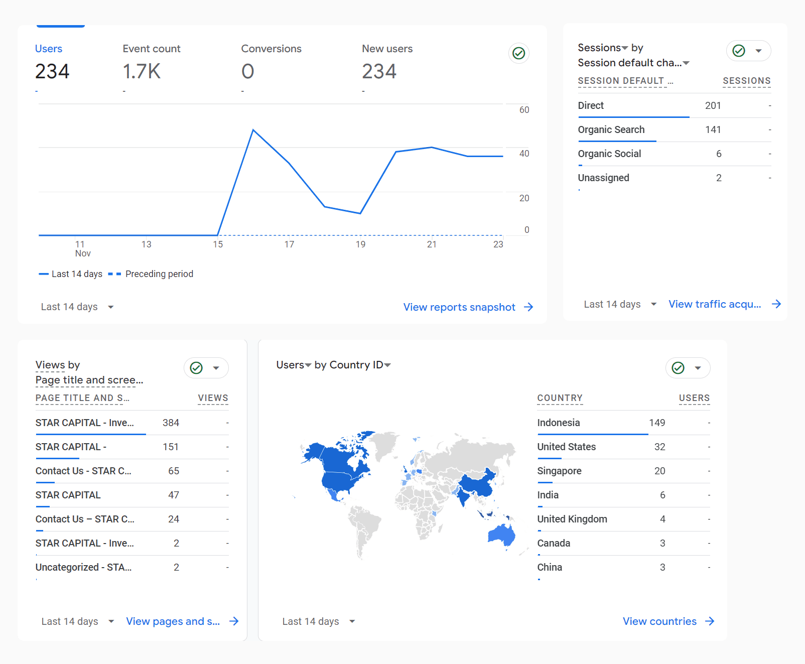Two weeks after deployment, the website shows impressive performance despite no official launch. Below is a snapshot from the website's Google Analytics and it amassed 200+ visitors!
